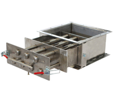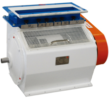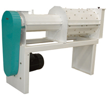 打麩機(jī)是將物料在高速旋轉(zhuǎn)的可調(diào)打板打擊下,麩片被拋向緩沖板和彈性篩,在打板的多次作用下,面粉從麩片分離,通過(guò)篩網(wǎng)落入卸料斗,同時(shí),得到含粉量較小的優(yōu)良麩皮。撞擊松粉機(jī)利用高速旋轉(zhuǎn)的葉輪、柱銷(xiāo)以及撞擊圈,使物料旋轉(zhuǎn),獲得巨大的離心力,物料在葉輪、柱銷(xiāo)以及撞擊圈之間連續(xù)撞擊,使研磨過(guò)程中形成的粉片得以松散、麥心得以粉碎,并使粘附在麩皮上的胚乳分離。撞擊磨粉機(jī)利用高速旋轉(zhuǎn)的葉輪、柱銷(xiāo)以及撞擊圈,使物料旋轉(zhuǎn),獲得巨大的離心力,讓物料在葉輪、柱銷(xiāo)以及撞擊圈之間連續(xù)進(jìn)行撞擊,使物料被研磨粉碎,有較高的出粉率。配麥器消化吸收國(guó)際先進(jìn)產(chǎn)品,根據(jù)配麥器中定量部件的容積不同,用以對(duì)原料的配比混合和原糧的定量供給。手氣動(dòng)閘門(mén)由氣缸帶動(dòng)閘板作往復(fù)直線(xiàn)運(yùn)動(dòng)來(lái)實(shí)現(xiàn)閘門(mén)的開(kāi)、閉,或通過(guò)齒輪帶動(dòng)齒條及上閘門(mén)作往復(fù)直線(xiàn)運(yùn)動(dòng)來(lái)實(shí)現(xiàn)閘門(mén)的開(kāi)、閉,以控制物料流量大小。