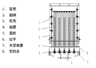 抽屜式結(jié)構(gòu)易于清理磁棒表面所吸附到的金屬物。